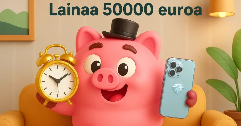 Suuren, esimerkiksi 50 000 euron, vakuudettoman lainan saaminen voi tuntua hankalalta, varsinkin jos oma pankki on hylännyt lainahakemuksesi. Moni suomalainen on kuitenkin löytänyt ratkaisuja netistä: nykyään useat rahoitusyhtiöt myöntävät suuria kulutusluottoja ilman vakuuksia ja pitkällä maksuajalla. Alapuolelle kerromme, miten voit hakea lainaa 50000 euroa ilman vakuuksia vastuullisesti ja mihin asioihin kannattaa kiinnittää huomiota ennen lainapäätöstä. Alla olevan lainalaskurin avulla voit myös arvioida, millainen kuukausierä 50 000 euron lainassa voisi olla eri takaisinmaksuajoilla.